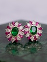 [11825] Arete Ovalado Cristales Rosado y Verde CZ